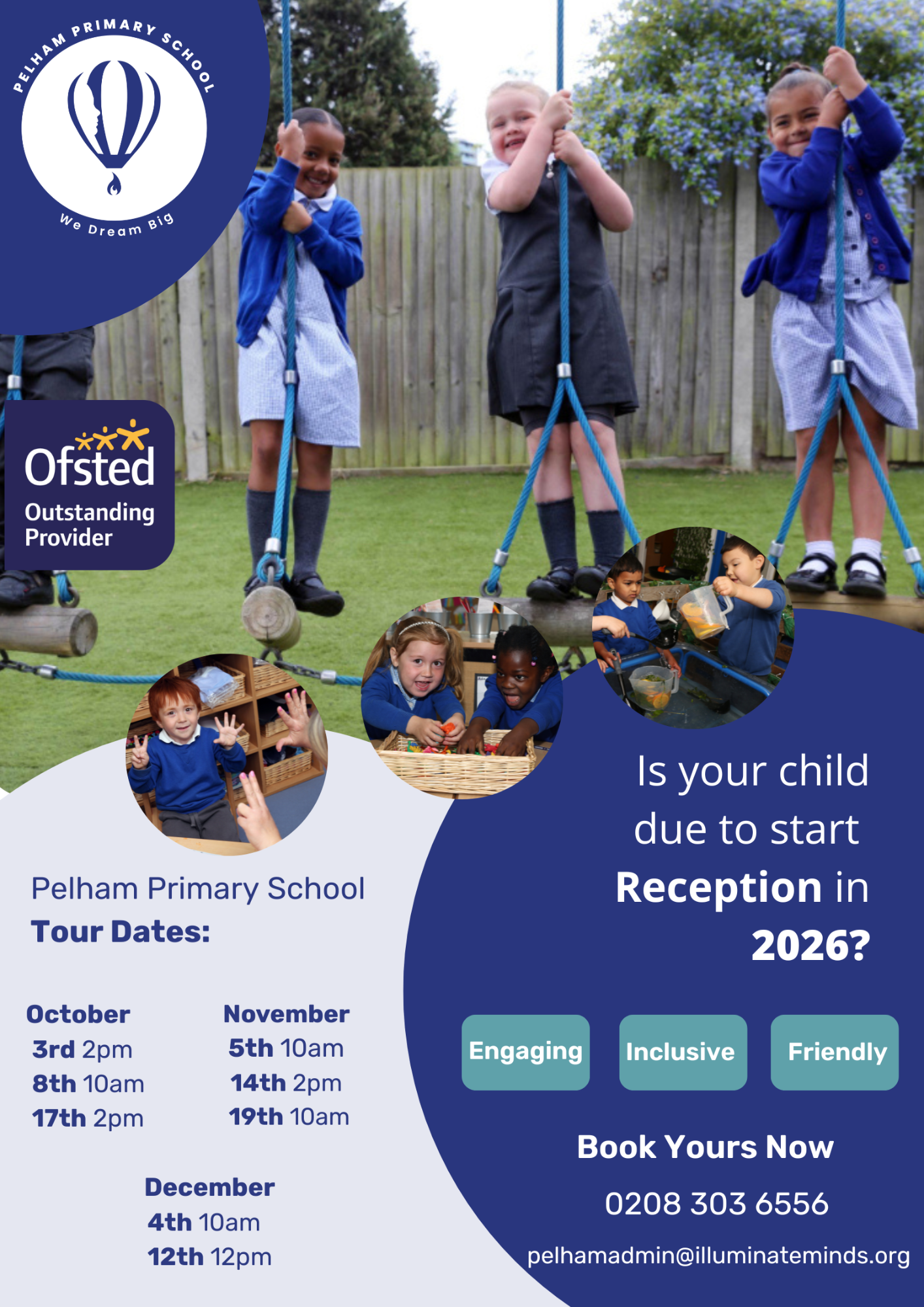 Book your personal tour now by emailing the school office at pelhamadmin@illuminateminds.org. Please include your name, your child's name, the year group needed and the date you would like to visit.